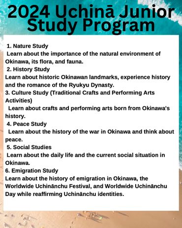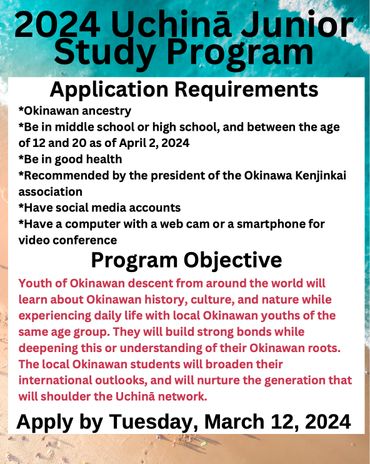 For any of our Okinawan youth who are interested in applying for the 2025 Uchina Junior Study program, please review the forwarded email and attachments.